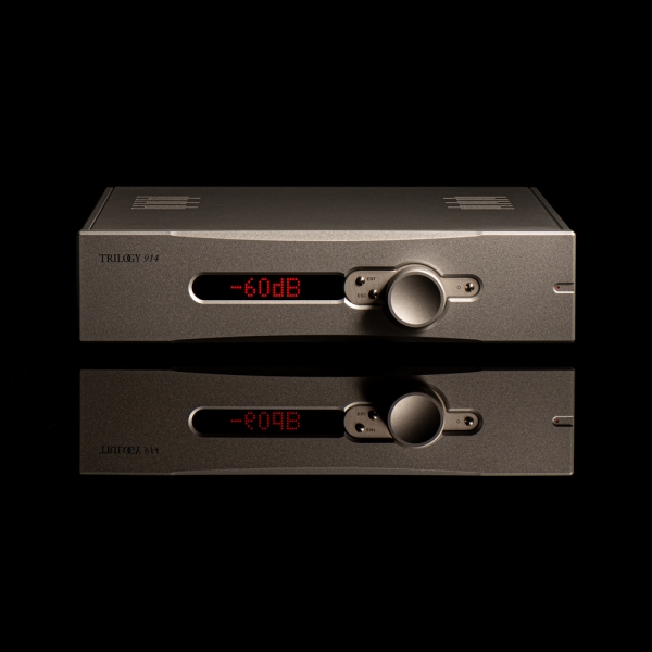 The Trilogy 914 is a fully balanced preamplifier crafted for absolute transparency and musical truth. Designed by Nic Poulson, its refined circuit employs six 6H6 super tubes and twenty-eight sputtered ruthenium relays to preserve every nuance of the signal. Three independent transformers separately power the control, heater, and high-tension stages, while four shunt-regulated supplies maintain absolute silence and stability. With at total of six inputs - 3x RCA 3x balanced and balanced and RCA outputs, and Trilogy firmware that offers extensive user customisation, the 914 combines intuitive control with sublime sonic depth. Impeccably built and effortlessly musical, it belongs at the centre of every reference-grade system.